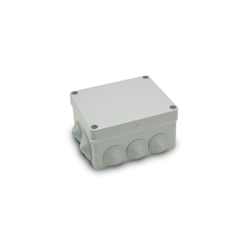 Caja estanca con carril. Medidas interiores 160x135x83mm. (8 conos Ø32 y 2 conos Ø40). Grado de protecci—n IP55. Resistencia al impacto IK08. Estabilidad dimensional -25¼C+85¼C. Hilo incandescente 650¼C. Normas EN 60670-22. Material Libre de halógenos .
